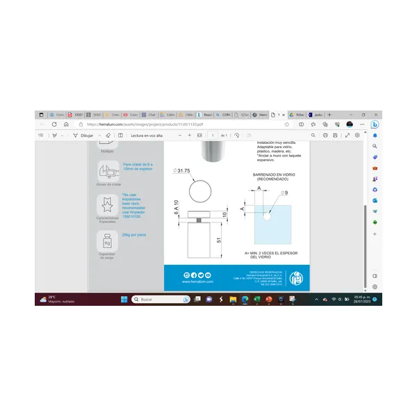 Sé el primero en valorar “Conector muro-vidrio con base de rosca (19X47 MM)”